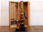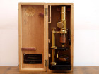 El Dr. Santiago Ramón y Cajal, prestó su servicio militar en sanidad, durante el conflicto de la Guerra de Cuba, en este periodo histórico, usando este modelo de microscopio.